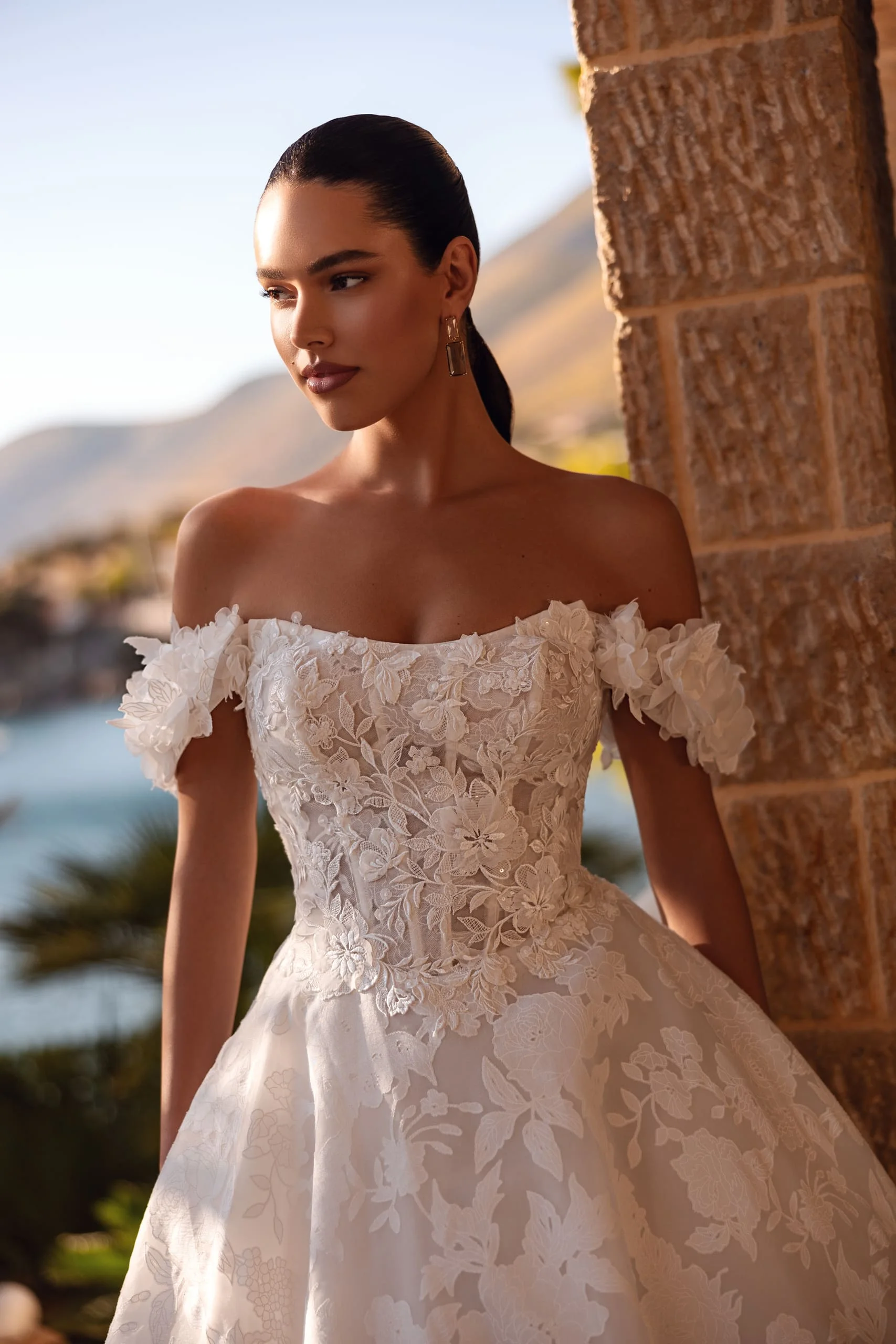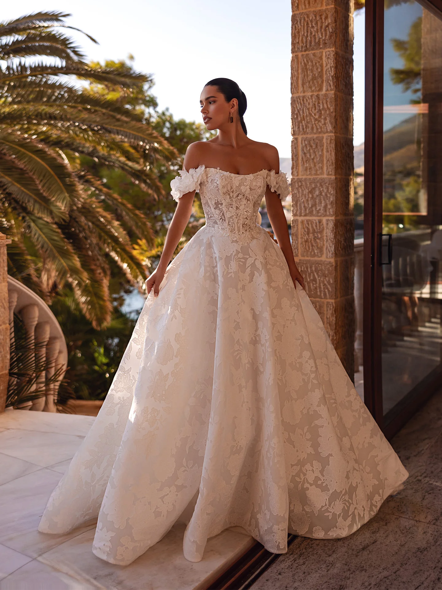 Ova princeza venčanica odiše romantikom, elegancijom i raskošnim stilom koji svaku mladu pretvara u pravu kraljicu. Izrađena je od luksuzne organze sa bogatim vezenim detaljima i nežnom čipkanom postavom koja stvara sofisticiran i romantičan izgled. Gornji deo je oblikovan tako da naglašava struk i dekolte, dok blagi spušteni rukavi daju dodatnu dozu ženstvenosti. Široka, raskošna suknja A-kroja pruža prelep volumen i elegantno se širi pri svakom pokretu. Delikatni floralni motivi na tkanini dodatno naglašavaju luksuz i romantiku. Ova venčanica je idealan izbor za mlade koje žele klasičan, princeza stil sa modernim i sofisticiranim detaljima na svom posebnom danu.