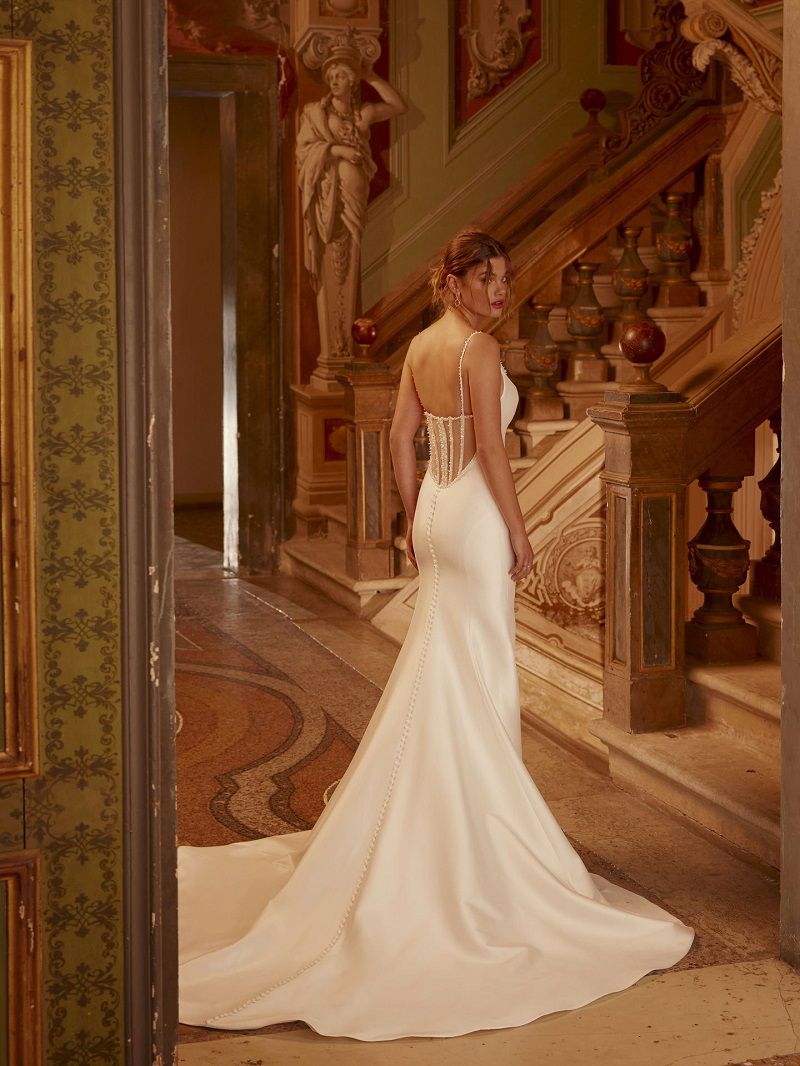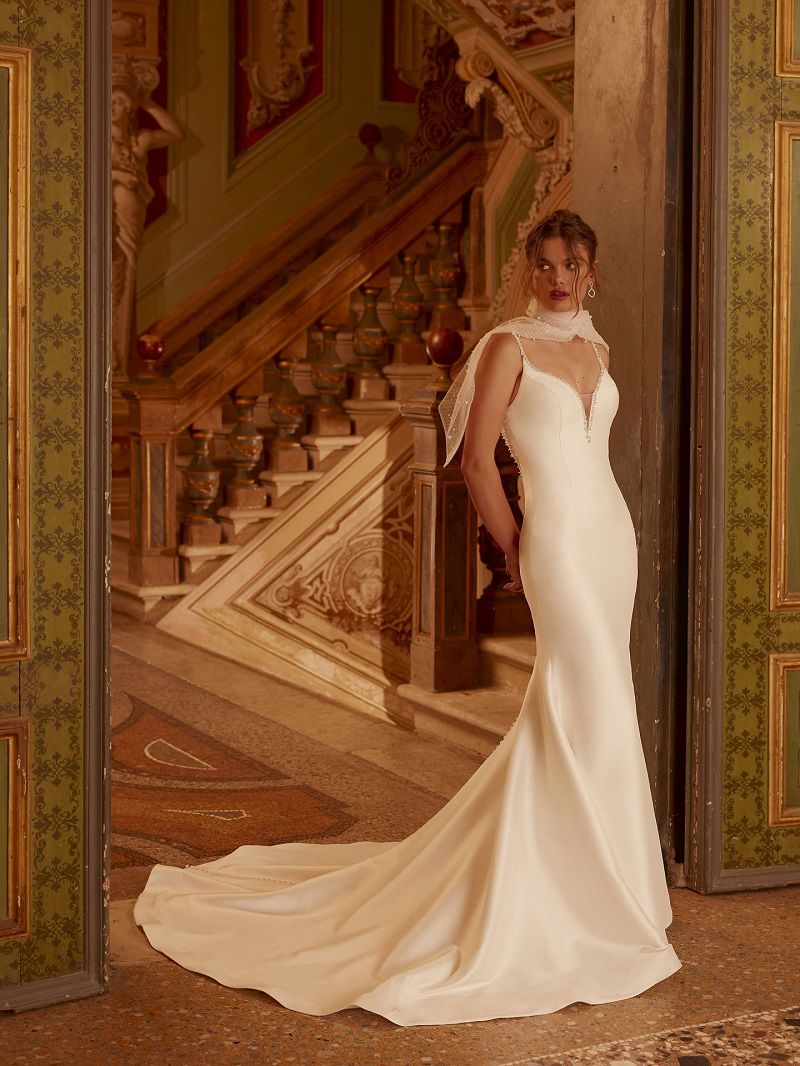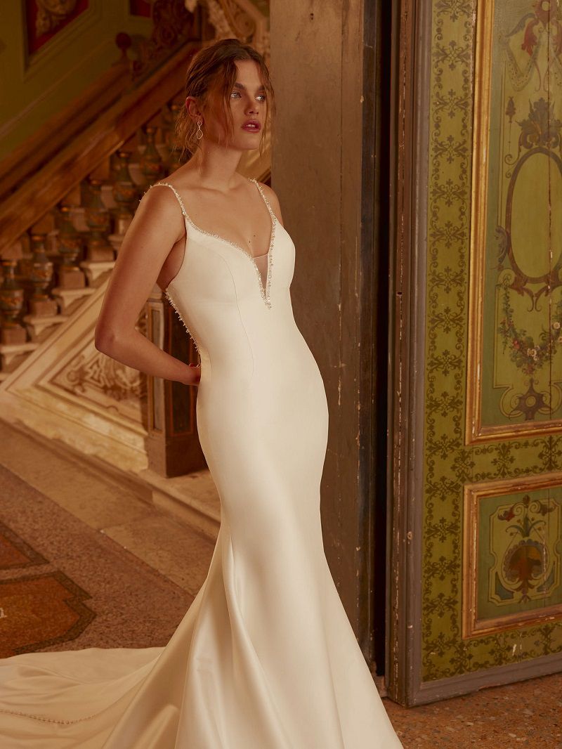 Zanima vas fantastična tkanina koja stoji iza magije stila 1281? To je upravo najfinija mikado svila koja savršeno naglašava svaku vašu oblinu. Ovoj šik haljini dašak modernog glamura daju svetlucave perlice na V-izrezu, kao i na leđima.